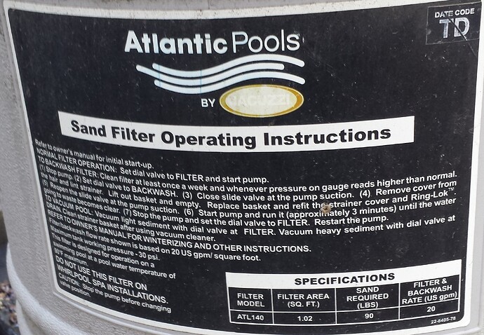 I have an Atlantic by Jacuzzi Sand Filter model # ATL140 that is leaking around the valve gasket to the sand filter. Also the valve does not function on the regular filter setting anymore, so I would like to replace the valve. My problem is that I cannot find what the part number for the replacement valve would be, or locate any information about the sand filter or valve.